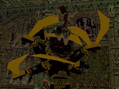 With a few more Shiva kills under her death, Lara gets cocky and starts arming this statue with the swords of its fallen comrades. She was really fussy about what order to place them in, too – the first sword had to go in the left hand, otherwise she would just refuse to do anything. Diva.